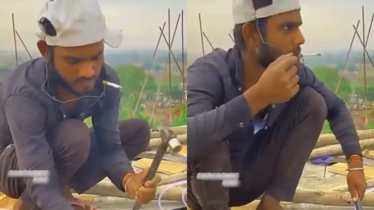 अभी जो वीडियो वायरल हो रहा है उसमें नजर आता है कि एक बंदा किसी के घर में काम कर रहा है। वो छत पर हैं और वहां पर लकड़ी में कील ठीक रहा है। इस दौरान वो सिगरेट कैसे पीता तो उसने गजब का दिमाग लगाया। उसने अपनी टोपी में एक तार को लगाया और उसे घुमाते हुए अपने मुंह के पास ले आया। उस तार में उस में उसने सिगरेट को फिट कर दिया है। अब वो काम करते हुए सिगरेट का आनंद ले रहा है। किसी ने उसका यह वीडियो बना लिया जो सोशल मीडिया पर वायरल हो रहा है।
