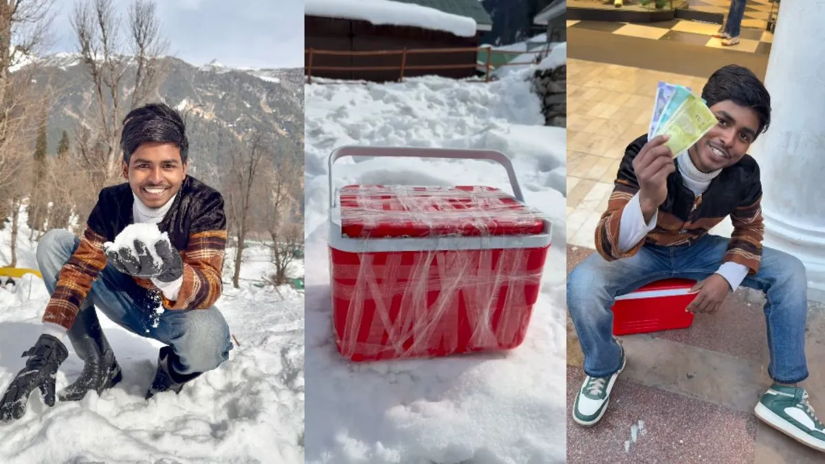 दरअसल, सोशल मीडिया प्लेटफार्म इंस्टाग्राम पर एक वीडियो तेजी से वायरल हो रहा है। वीडियो में एक शख्स को कश्मीर में दिखता है। वीडियो के मुताबिक वह कश्मीर से एक बॉक्स में बर्फ भरकर दिल्ली लाता है। रास्ते में वह कई लोगों से सवाल भी करता है कि क्या यह बर्फ दिल्ली तक पहुंच पाएगी, जिसपर लोगों ने जवाब दिया कि नहीं यह रास्ते में ही पिघल जाएगी। हालांकि किसी तरह से वह फ्लाइट के जरिए बर्फ को लेकर दिल्ली तक पहुंचता है। यहां दिल्ली पहुंचने के बाद वह अगली सुबह बर्फ बेचने पहुंच जाता है। जब वह लोगों को बताता है कि यह बर्फ कश्मीर से लेकर आया है तो लोग विश्वास नहीं कर पाते। वह मोबाइल में जब इसका वीडियो दिखाता है तो लोगों को भरोसा होता है। शख्स ने इस बर्फ को दिखाकर लोगों से पैसे भी कमाए।