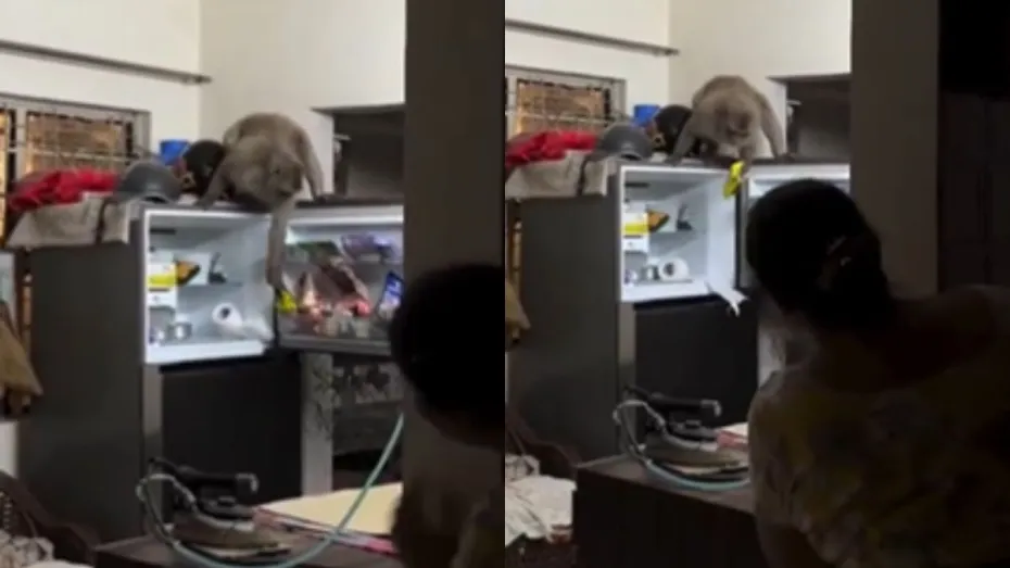 सोशल मीडिया पर हर कुछ समय में बंदरों का कोई न कोई वीडियो वायरल हो ही जाता है जिसमें वो किसी का कोई सामान छीनने के बाद खाने की कोई चीज लेते दिखते हैं मगर अभी के वायरल वीडियो में अलग नजारा दिखा। अभी जो वीडियो वायरल हो रहा है उसमें नजर आता है कि एक बंदर किसी के घर में घुस गया है और फ्रिज पर चढ़ गया है। वो फ्रिज खोलकर वहां से बादाम का पैकेट उठाकर ले जाता है। उसी घर की लड़की ने वीडियो बनाया जो अब वायरल हो रहा है।