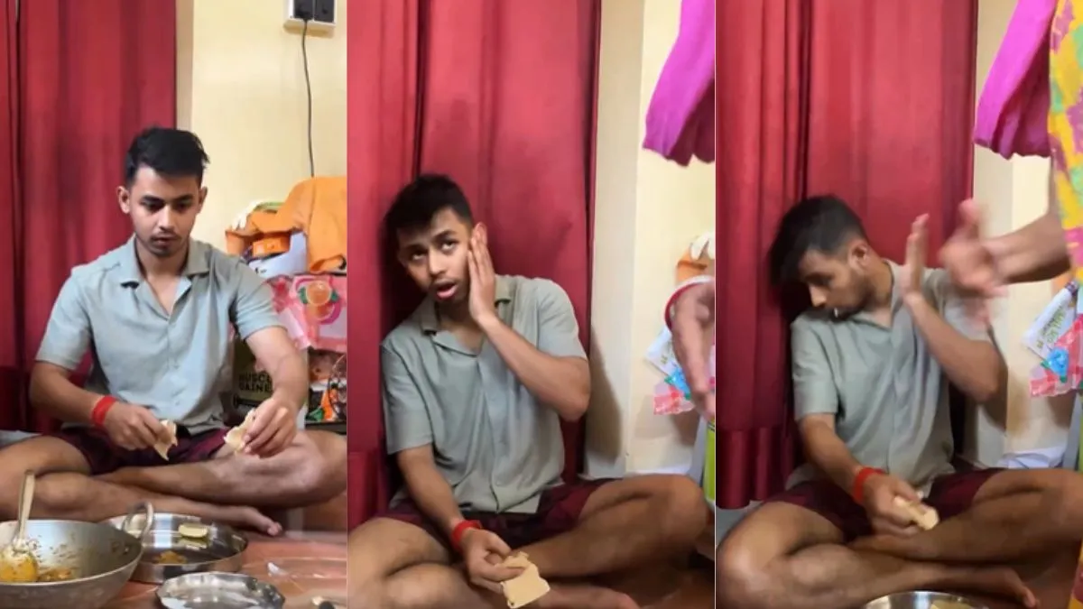 इस वीडियो को एक्स पर @missintrover नामक हैंडल से शेयर किया गया है। इसे कैप्शन दिया गया है - 'वो मां हैं उनसे कभी गलती नहीं हो सकती।' इसमें आप देखेंगे कि बेटा किचन में बैठा खाना खा रहा होता है तभी उसकी मां उसे रोटी देने के लिए आती हैं। जैसे ही वो रोटी तोड़ता है तो सामने रखा दूध या छाछ का गिलास गिर जाता है और फर्श पर बिखर जाता है। ये देखकर मां का पारा चढ़ जाता है और वो बेटे को पहला थप्पड़ लगा देती हैं। मगर तभी मां का पैर एक गिलास से टकराता है और फर्श पर पानी से भरा गिलास गिर जाता है। ये देखकर बेटा उनको देख रहा होता है कि तभी महिला अपनी गलती पर भी बेटे को थप्पड़ जड़ देती हैं। इसके बाद जैसा ही बेटा बहस करने लगता है वैसे ही तीन-चार-पांच करते हुए बेटे को बैक टू बैक थप्पड़ों का सामना करना पड़ता है। अंत में जब रोटी जल जाती है तो मां उसे फिर थप्पड़ जड़ देती हैं।