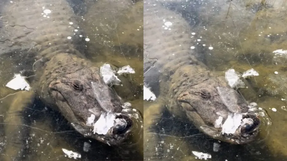 प्रकृति के आगे हम इंसानों की बनाई चीजें कुछ भी नहीं हैं। प्रकृति हमेशा कुछ ऐसा कर दिखाती है जो लोगों को हैरत में डाल देता है। कई बार ये प्रकृति के करिश्मे इंसानों के साथ-साथ जीव-जंतु सबके लिए चुनौती बन जाते हैं। इसी को बयां करता एक वीडियो सोशल मीडिया पर इन दिनों काफी छाया हुआ है। वीडियो में एक मगरमच्छ को बर्फीली झील के नीचे जमा हुआ देखा जा सकता है।