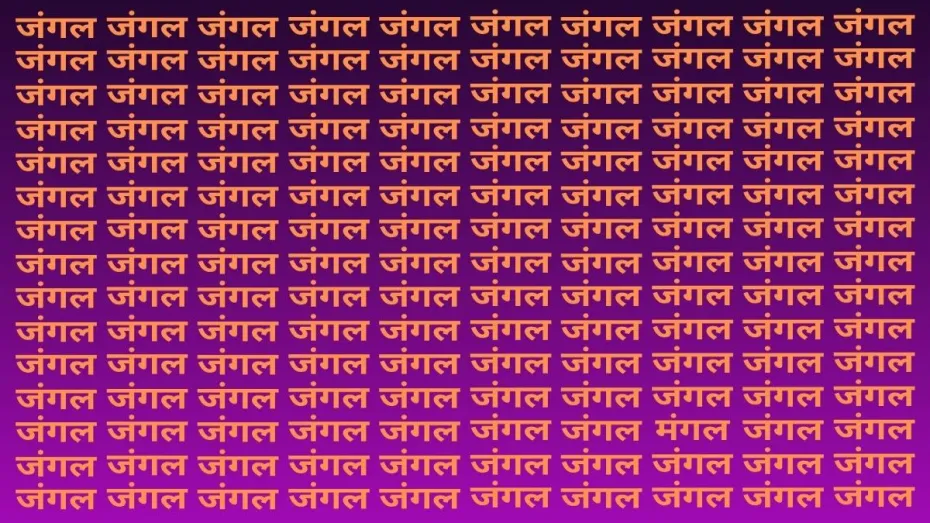 सोशल मीडिया पर एक ऐसे ऑप्टिकल इल्यूजन की तस्वीर वायरल हो रही है जो लोगों की आँखों को चकमा देने में कोई कसर नहीं छोड़ रही। इस तस्वीर ने लोगों का दिमाग हिलाकर रख दिया है। वायरल हो रहे इस ऑप्टिकल इल्यूजन वाली तस्वीर में लोगों को एक चैलेंज भी दिया गया है जिसमें कहा गया है कि आपको 20 सेकंड के अंदर जंगल में मंगल की खोज करनी है। सबसे पहले तो बता दें कि ये तस्वीर कोई जंगल की तस्वीर नहीं है। यह एक ऑप्टिकल इल्यूजन वाली तस्वीर है जिसमें चारों ओर जंगल शब्द लिखा गया है। इसी बीच में बड़ी ही चतुराई के साथ एक जगह मंगल शब्द को भी लिख दिया गया है। अब आपको इसी मंगल शब्द की खोज करनी है। मंगल को इतनी चालाकी से छिपाया गया है कि ढूँढने की कोशिश में आपकी आँखें बार-बार चकरघिन्नी खेलेंगी।