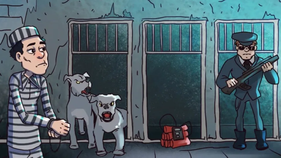 आज आपके लिए एक ऐसी ही तस्वीर लेकर हम हाजीर हैं जिसमें दी गई पहेली बहुत ही दिलचस्प और काफी ट्रिकी है। सबसे पहले तस्वीर को देखिए। तस्वीर में एक कादी दिख रहा होगा। कैदी को जेल से भागना है। उसके सामने तीन रास्ते हैं। एक में भूखे कुत्ते दरवाजे पर खड़े हैं। दूसरे में एक टाइम बॉम्ब रखा गया है जो कि 5 मिनट में फटने वाला है और तीसरे में एक गार्ड बंदूक लेकर खड़ा है। अब बताइए कि चोर को किस रास्ते से भागना चाहिए। अब आप अपना दिमाग लगाइए और इस पहेली का उत्तर दीजिए।