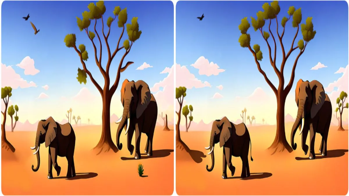वायरल तस्वीर में एक खूबसूरत जंगल के दृश्य को दिखाया गया है। दोनों इमेज में दो हाथी दिख रहे हैं, जिनमें से एक बड़ा और एक छोटा है। ये दोनों हाथी एक पेड़ के नीचे चलते हुए दिखाई दे रहे हैं। तस्वीर के बैकग्राउंड में नीला आसमान, हल्के बादल, और दूर पहाड़ों का नजारा भी दिख रहा है। पहली नजर में दोनों तस्वीरें एकदम एक जैसी ही लग रही हैं। लेकिन अगर आप इस पर गौर करेंगे तो आपको उन तस्वीरों में 10 छोटे-छोटे अंतर नजर आएंगे। इस तस्वीर को सोशल मीडिया पर खूब शेयर किया जा रहा है, और लोग इसे अपने दोस्तों और परिवार के साथ शेयर कर एक-दूसरे को चैलेंज दे रहे हैं।