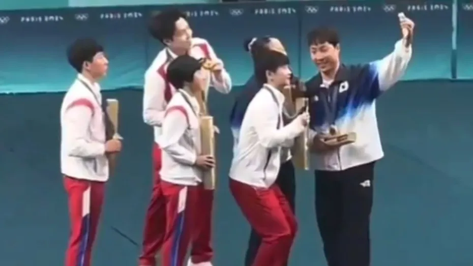 एक साथ ग्रुप सेल्फी लेते हुए दिखे उत्तर और दक्षिण कोरिया के खिलाड़ी