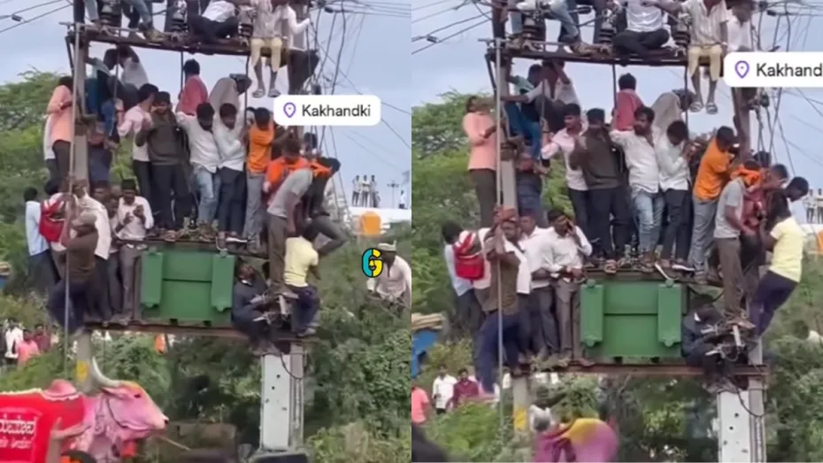 वायरल हो रहे इस वीडियो में देखा जा सकता है कि गांव के एक जगह पर लोगों की भीड़ इकट्ठी हो रखी है। जहां एक तरफ कुछ लोग ट्रांसफार्मर पर चढ़े हुए हैं, तो वहीं, दूसरी तरफ इकट्ठे हुए लोग अपने अपने मोबाइल से उनका वीडियो शूट कर रहे हैं। ट्रांसफार्मर के आस-पास दो बेकाबू बैल घूमते हुए दिख रहे हैं। वीडियो को देखने से साफ पता चल रहा है कि लोग इन्हीं बैलों से बचने के लिए डर के मारे ट्रांसफार्मर पर चढ़े हुए हैं। जबकि कई लोग उन बैलों से डरकर सड़क पर इधर-उधर भागते दिख रहे हैं। ट्रांसफार्मर पर चढ़े लोगों को आप देख सकते हैं कि कोई तार पकड़कर झूल रहा है तो कोई ट्रांसफार्मर के भी ऊपर लगे सर्किट पर चढ़ा हुआ है। पूरे ट्रांसफार्मर को लोगों ने मधुमक्खियों की तरह छाप लिया है।