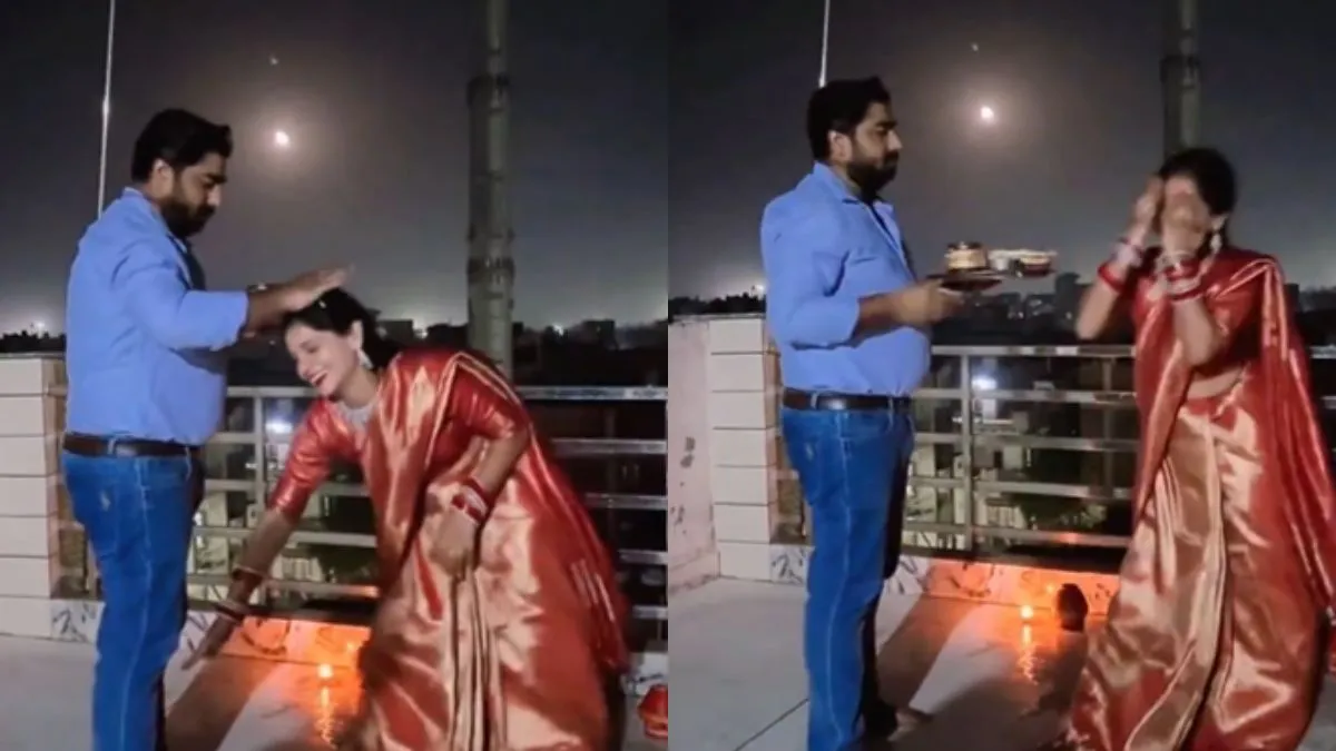 आप सभी को करवा चौथ के बारे में पता ही होगा। आपको यह भी पता होगा कि व्रत कैसे खोला जाता है। अब जो वीडियो वायरल हो रहा है उसमें नजर आता है कि महिला सब कुछ कर चुकी है और अब वो अपने पति के पैर छूएगी लेकिन वो तरीका देखने के बाद आप भी हैरान हो जाएंगे। महिला अपने पति के घुटने तक हाथ ले जाती और फिर वापस ले आती और कमर हिलाकर डांस करती है। ऐसा वो कई बार करती है और पति भी बार-बार आशीर्वाद देता है। आखिर में वो अपने पति के पैर छूती है।