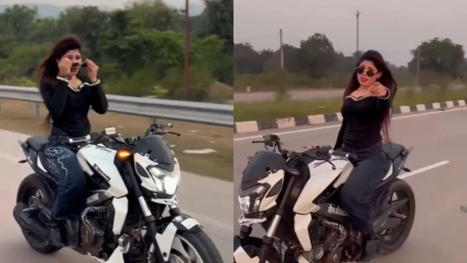 लड़की ने बाइक पर किया स्टंट