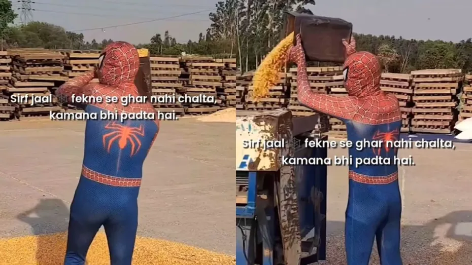 आप सभी ने स्पाइडर मैन के बारे में तो सुना ही होगा। स्पाइडर-मैन मार्वल कॉमिक्स का काल्पनिक सुपर हीरो है जो मुसीबत पड़ने पर दुनिया को बचाता है। इस सुपर हीरो पर कई फिल्में भी बन चुकी हैं। स्पाइडर मैन बच्चों का काफी पसंदीदा करैक्टर है। लेकिन क्या आपने कभी स्पाइडर मैन को मजदूरों के साथ मिलकर काम करते हुए देखा है। सोशल मीडिया पर अभी एक मजेदार वीडियो वायरल हो रहा है। इस वीडियो को देखने के बाद आप अपनी हंसी को दबा नहीं पाएंगे। आइए फिर आपको वायरल वीडियो के बारे में बताते हैं।