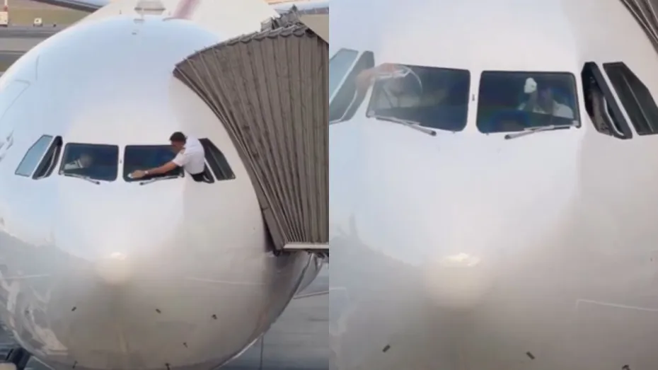 हम जिस वीडियो की बात कर रहे हैं उसमें नजर आता है कि एक प्लेन खड़ी है। उसी प्लेन की खिड़की से एक पायलट बाहर निकला हुआ है और वो शायद अपने रूमाल से उसकी खिड़की को साफ कर रहा है। कुछ देर बाद वो जब खिड़की को साफ कर लेता है, अपनी सीट पर बैठ जाता है। इसके बाद दिखता है कि दूसरा पायलट भी एक बोतल से खिड़की पर पानी डालता है और उसके बाद वो भी खिड़की को साफ करता नजर आता है। अब यह वीडियो कब का है और कहां का है, यह तो नहीं पता मगर वीडियो जरूर वायरल हो रहा है।