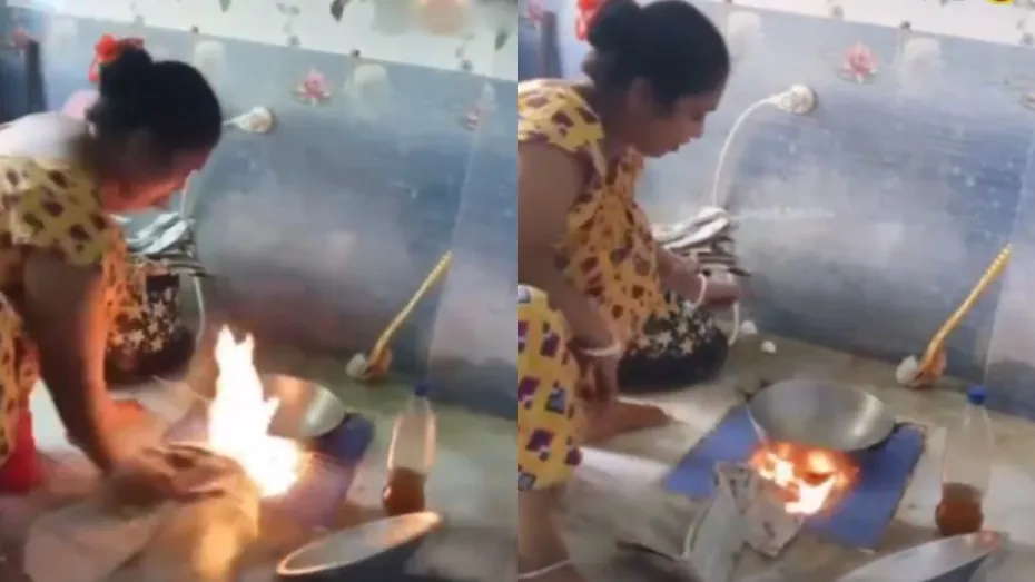 सोशल मीडिया पर एक नया वीडियो वायरल हो रहा है जिसने लोगों का दिमाग खराब किया है। वायरल हो रहे वीडियो में नजर आता है कि एक महिला किसी जगह पर बैठी हुई है और उसने अपने सामने कढ़ाई रखा हुआ है। इसके बाद वह कागज जलाकर चूल्हा जलाने लगती है। मगर वीडियो को ध्यान से देखने पर पता चला कि महिला टॉयलेट में बैठी हुई है और उसने इंडियन कमोड पर कढ़ाई रखकर उसे चूल्हा बना लिया है। वीडियो सोशल मीडिया पर काफी वायरल हो रहा है।