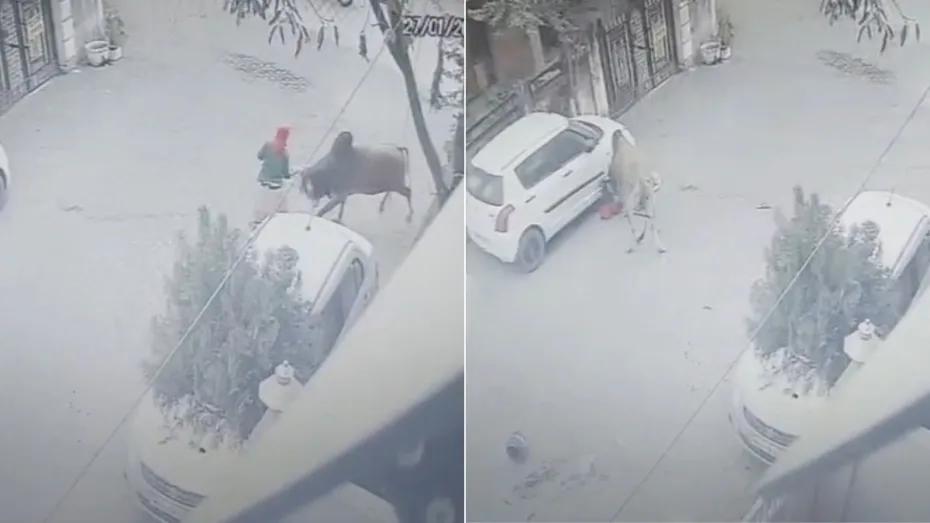 सांड ने भागती लड़की को जमीन पर पटककर पैरों तले रौंदा, रोंगटे खड़े कर देगा यह CCTV