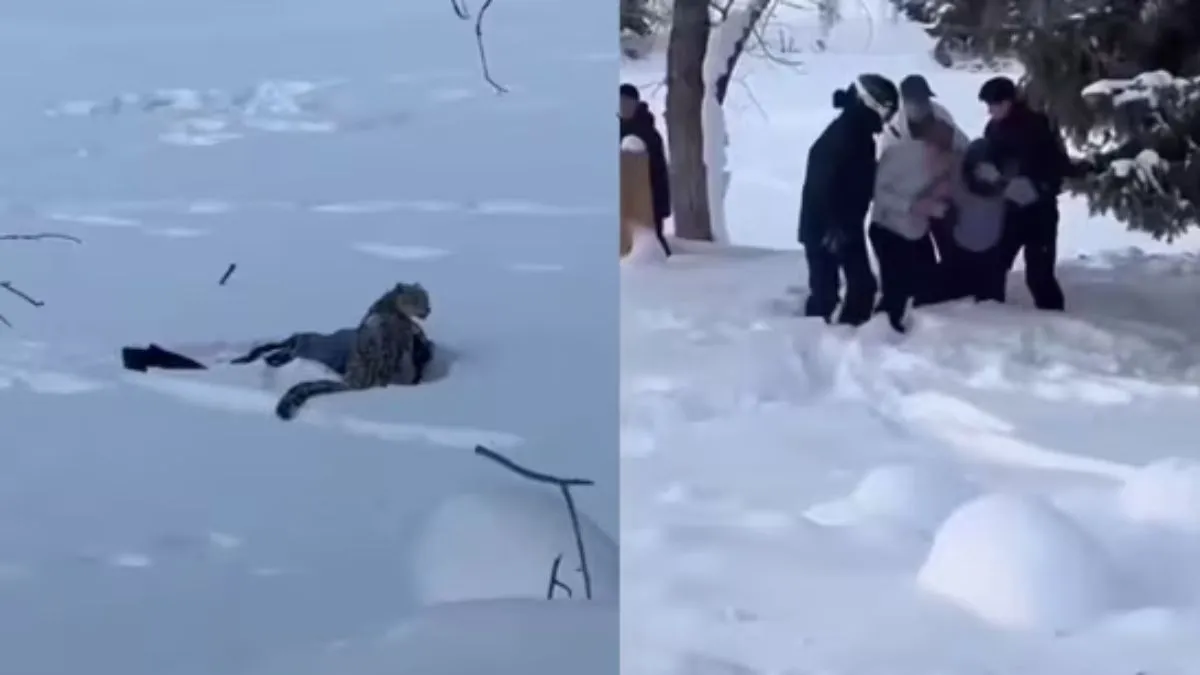 Snow Leopard Attack Video : चीन में एक पर्यटक पर हिम तेंदुए के हमले का एक दिल दहला देने वाला वीडियो सोशल मीडिया पर वायरल हो गया है। इसके बाद से जंगली जानवरों से सुरक्षित दूरी बनाए रखने के बारे में अधिकारियों की ओर से नए सिरे से चेतावनी जारी की गई है। सीएनएन की एक रिपोर्ट के अनुसार, उत्तर-पश्चिमी चीन में एक महिला स्कीयर पर हिम तेंदुए ने हमला कर दिया जब वह तस्वीरें लेने के लिए उसके बेहद करीब चली गई। यह घटना शुक्रवार को मंगोलिया के साथ चीन की उत्तरी सीमा के पास फुयुन काउंटी में हुई।