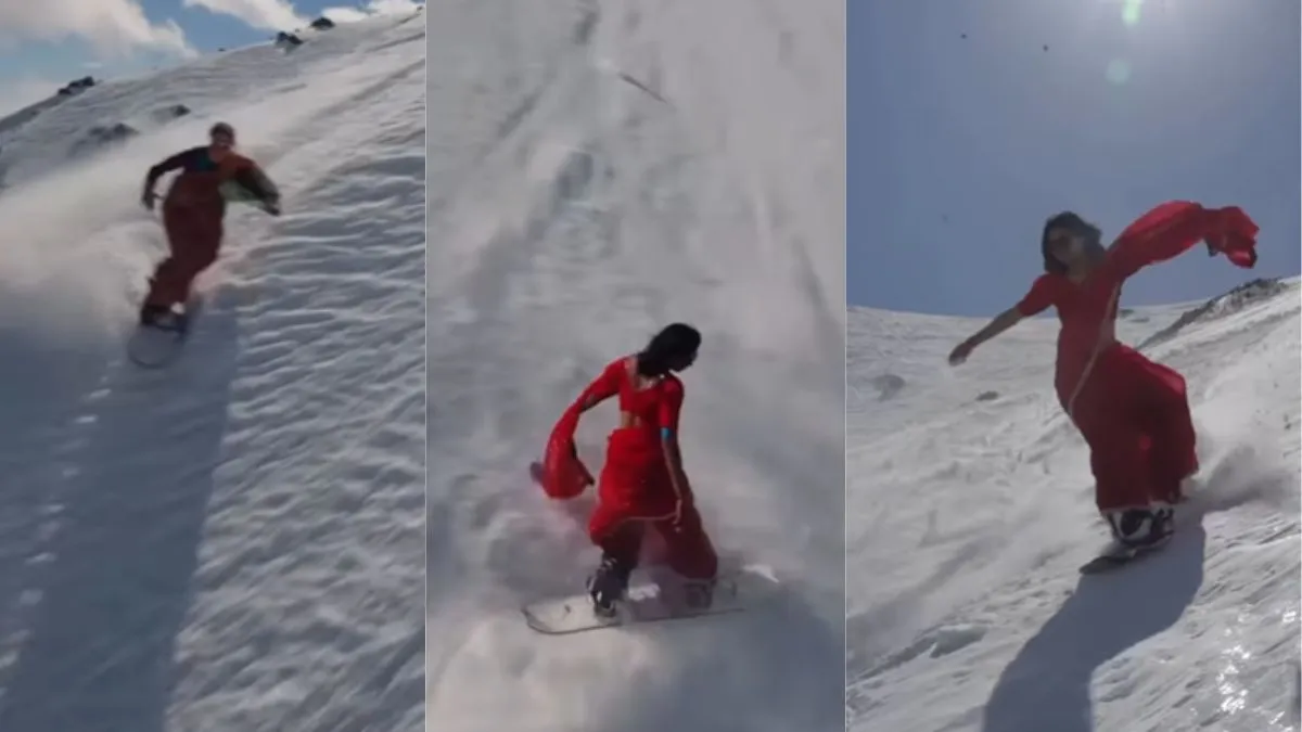 साड़ी पहनकर बर्फ से ढके पहाड़ पर स्नोबोर्डिंग वाकई एक चुनौती भरा काम है। लेकिन नवी मुंबई की उर्मिला पाब्ले ने इसे साबित कर दिखाया है। कश्मीर के गुलमर्ग में साड़ी में स्नोबोर्डिंग करते हुए उर्मिला का वीडियो सोशल मीडिया पर इन दिनों तेजी से वायरल हो रहा है। इसे उर्मिला ने अपने सोशल मीडिया पर शेयर किया है। इस विडियो में वह अपनी साथी राइडर लिंडा के साथ नजर आ रही है। दोनों महिलाएं साड़ी पहनकर बर्फीली ढलानों पर स्नोबोर्डिंग करती नजर आ रही हैं। साड़ी और लहराती चुनरी के साथ स्नोबोर्डिंग लोगों को काफी पसंद आ रहा है। इसे 85 लाख से ज्यादा व्यूज मिल चुके हैं।