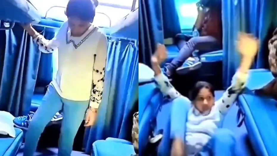 आप सभी ने ट्रेन में कभी न कभी तो सफर किया ही होगा। उसमें आपने देखा होगा कि ऊपर की सीट पर चढ़ने के लिए सीट के पास सीढ़ी लगी हुई होती है जिसके जरिए लोग ऊपर चढ़ते हैं। मगर एक दीदी ने स्टाइल में ऊपर वाली सीट पर चढ़ने का सोचा और लगभग वो पहुंच भी गई थी। लेकिन थोड़ा सा बैलेंस बिगड़ने के कारण वो सीधे नीचे गिर गई और उसके बाद वो उठकर चुपचाप नीचे वाली सीट पर ही बैठ गई। यह देख एक लड़का हंसने भी लगता है। अब यह वीडियो स्क्रिप्टेड है या फिर रियल, यह तो नहीं पता मगर वायरल हो रहा है।