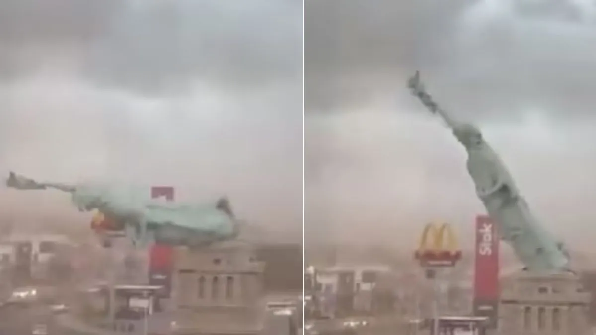 इस वीडियो को एक्स पर @BGatesIsaPyscho नामक हैंडल से शेयर किया गया है। वीडियो में मूर्ति को झुकते और फिर जमीन पर गिरते हुए देखा जा सकता है, जबकि पास की व्यस्त सड़क पर वाहन चलते रहते हैं। यह प्रतिकृति एक फास्ट-फूड आउटलेट के पास स्थापित की गई थी। सोशल मीडिया पर शेयर किए गए वीडियो में तेज हवा को इलाके में कहर बरपाते हुए दिखाया गया है। जिसमें कुछ वाहन चालक अपने वाहनों को दूर ले जाने का प्रयास कर रहे हैं क्योंकि मूर्ति गिरने लगी थी। नागरिक सुरक्षा अधिकारियों ने कहा कि इमारत गिरने के कारणों का पता लगाने और भविष्य में ऐसी घटनाओं से बचने के लिए उपाय सुझाने के लिए एक तकनीकी मूल्यांकन किया जाएगा।