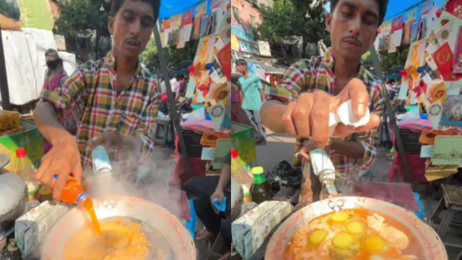 फैंटा मिलाकर अंडा भुर्जी बनाते दिखा शख्स