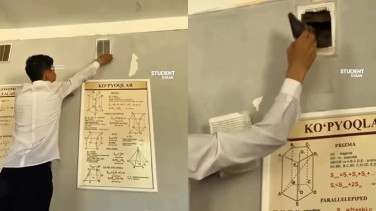 इस वायरल वीडियो को इंस्टाग्राम पर @studentgyaan नाम के अकाउंट से शेयर किया गया है। वीडियो में आप देख सकते हैं कि एक छात्र क्लासरूम में फोन छुपाने की ऐसी जगह दिखाता है, जिसके बारे में कोई टीचर शायद ही सोच सके। वीडियो में दिखाया गया है कि छात्र ने अपने फोन को क्लास में लगे AC डक्ट के पीछे छुपा रखा है। वीडियो को देखें तो आप पाएंगे कि छात्र एक बेंच पर चढ़ता है और AC डक्ट की जाली को हटाता है, फिर उसके अंदर हाथ लगाकर अपने फोन को बाहर निकालता है। अब भला इस जगह पर तो टीचर की नजर पड़ना लगभग नामुमकिन है। छात्र के इस तरकीब को देखकर लोग हैरान रह गए।