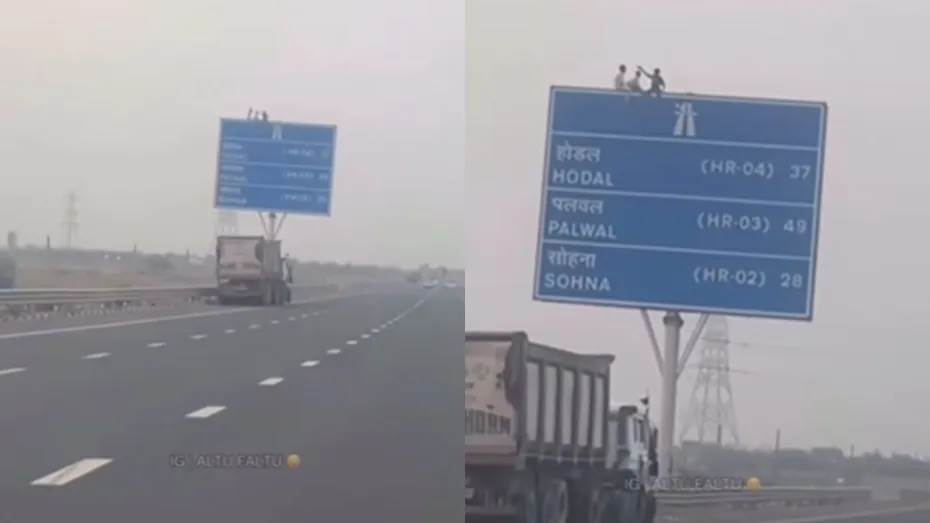 आप जब भी किसी हाईवे या फिर नेशनल हाईवे से गुजरते हैं तो आपने देखा होगा कि वहां बोर्ड लगे होते हैं। इन बोर्ड्स पर अलग-अलग जगहों की दूरी बताई जाती है ताकि लोगों की मदद हो सके। इस वायरल वीडियो में भी ऐसी ही एक बोर्ड दिखा जो लोगों को अलग-अलग जगहों की दूरी बताने के लिए लगा हुआ है। मगर उस बोर्ड के ऊपर जो दिखता है, उसने हर किसी के होश उड़ा दिए हैं। वीडियो में नजर आता है कि उसी बोर्ड के ऊपर तीन लोग आराम से बैठे हुए हैं। वहीं नीचे भी कोई शक्स नजर नहीं आ रहा है जो उनकी टीम का हो या फिर मदद के लिए खड़ा हो। इसी कारण यह वीडियो लोगों को ज्यादा हैरान कर रहा है।