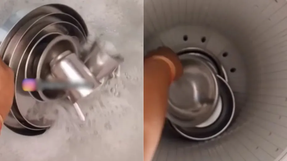 आपके घर में जो वाशिंग मशीन है, आप उसका इस्तेमाल किस काम के लिए करते हैं। जाहिर सी बात है, हर कोई वाशिंग मशीन में अपने गंदे कपड़ों को धोता है। लेकिन वायरल वीडियो में कुछ और ही देखने को मिला। वायरल हो रहे वीडियो में नजर आ रहा है कि एक महिला इसमें अपने बर्तनों को धो रही है। सबसे पहले महिला वाशिंग मशीन में पानी भरती है, फिर उसमें बर्तन धोने के लिए लिक्विड डाकर उसमें बर्तन डाल देती है। इसके बाद मशीन को चालू कर देती है। कुछ देर बाद महिला बर्तनों को सुखाने के लिए मशीन के ड्रायर में डाल देती है। वीडियो सोशल मीडिया पर काफी वायरल हो रहा है।