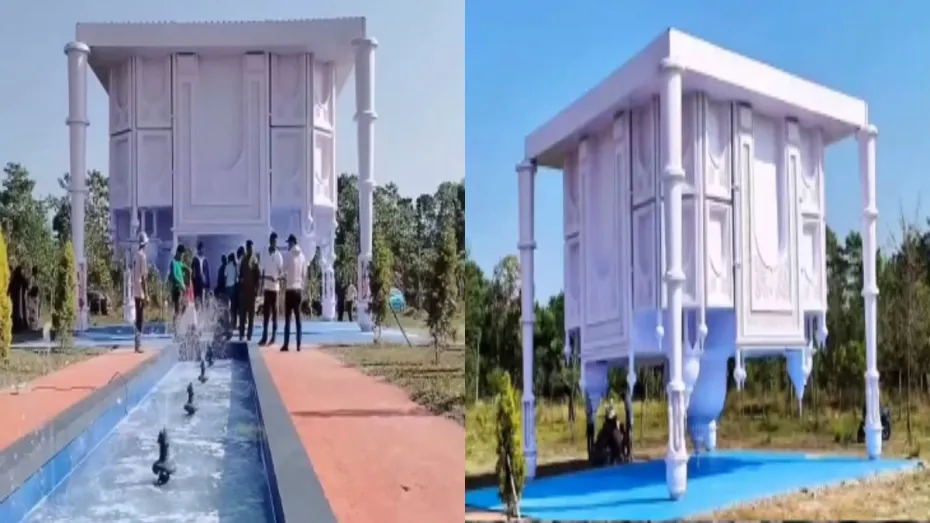 हाल में सोशल मीडिया पर ताजमहल जैसी ही कारीगरी देखने को मिला। जहां ताजमहल जैसा ही एक इमारत उलटा बनाया गया है। अब इस ताजमहल को क्यों और किसने बनवाया इसकी तो जानकारी नहीं लेकिन सोशल मीडिया पर फिलहाल इसका वीडियो बहुत तेजी से वायरल हो रहा है। वीडियो में देखा जा सकता है कि एक खुले मैदान में उलटा ताजमहल बनाया गया है। इसे बनाने के दौरान पूरी तरह से ताजमहल को कॉपी करने की कोशिश की गई है लेकिन इसे उलटा बनाया गया है। ताजमहल की तरह ही इसमें 4 मीनारें भी निर्मित की गई हैं। बीच में एक बड़ा सा गोल गुंबद भी दिखा रहा है। सफेद रंग से इसकी पुताई भी करवाई गई है। सामने पानी के फव्वारे भी लगाए गए हैं। इमारत को देख ऐसा लग रहा है जैसे ताजमहल को बनाने के बाद उसे उलटा कर के रख दिया गया हो।