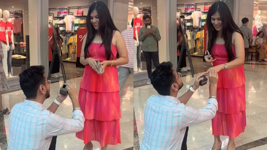 वायरल वीडियो में आप देख सकते हैं कि एक लड़का मॉल में चलते हुए जा रहा है। लड़का फिर एक लड़की को आवाज लगाता है लगाता है जो अपने दोस्तों के साथ उससे कुछ दूर आगे चल रही थी। लड़की आपको लाल रंग के ड्रेस में दिखेगी। लड़की आवाज सुनकर पीछे मुड़ती है। लड़की जैसे ही पीछे मुड़ती है, लड़का उसे प्रपोज कर देता है। प्रपोजल देखते ही लड़की के चेहरे पर मुस्कान आ जाती है और वो लड़के के पास आ जाती है।