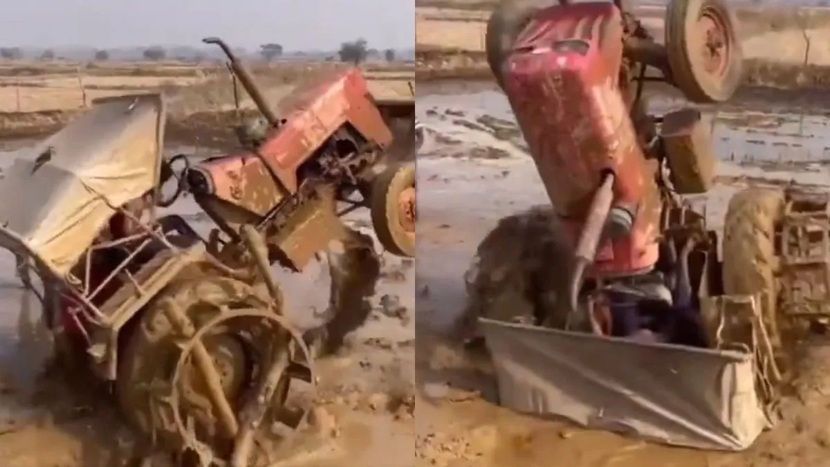 अभी जो वीडियो वायरल हो रहा है उसमें नजर आता है कि एक खेत में शख्स ट्रैक्टर को चला रहा है। खेत में पानी भरा हुआ है जिससे वो जगह कीचड़ जैसा हो गया है। उस जगह पर ट्रैक्टर चलाने वाले को न जानें क्या सूझता है और वो स्टंट करने की कोशिश करता है। वो ट्रैक्टर के आगे वाले पहिए को हवा में उठाता है लेकिन पहिया ज्यादा उठ जाता है तो वो फिर उसे बैलेंस नहीं कर पाता है। ट्रैक्टर पूरी तरह से खड़ा हो जाता है। वो शख्स किसी तरह से अपनी जान बचाकर बाहर निकलता है।