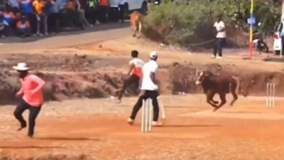 सोशल मीडिया पर वायरल हो रहे वीडियो में आप देख सकते हैं कि किसी जगह पर दो टीमों के बीच एक क्रिकेट का मैच चल रहा है। इस मैच को देखने के लिए काफी लोग भी आए हुए हैं। तभी वहां अचानक दो सांड पहुंच जाते हैं। इसमें से एक सांड अचानक गुस्से में आ जाता है और लोगों के पीछे भागने लगता है। सब लोग अपनी जाने बचाने के लिए भागने लगते हैं। जिसे जहां जगह दिखता है, वह शख्स उसी दिशा में भागने लगता है। वीडियो सोशल मीडिया पर काफी वायरल हो रहा है।