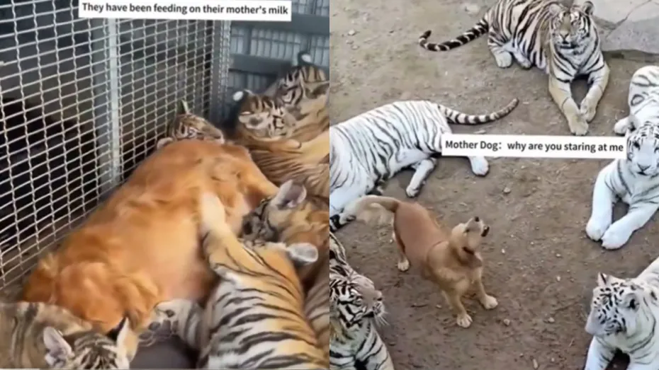 वीडियो में बताया गया है कि इन बाघ के बच्चों को उनकी बाघिन मां दूध नहीं पिलाती थी। ये बच्चे रोज भूखे रह जाते थे। तब जूकीपर ने यह तय किया कि इन बाघ के बच्चों को दूद पिलाने के लिए एक गोल्डन रिट्रिवर नस्ल की कुतिया लाया जाए। जिसके बाद इस कुतिया ने उन बच्चों को मां का प्यार दिया। वायरल हो रहे इस वीडियो को सोशल मीडिया प्लेटफॉर्म एक्स पर @PicturesFoIder नाम के अकाउंट से शेयर किया गया है। जिसे खबर लिखे जाने तक ढाई मिलियन लोगों ने देखा और 18 हजार लोगों ने शेयर किया है।