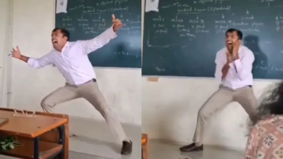 सोशल मीडिया प्लेटफॉर्म पर आमतौर पर ऐसे वीडियो वायरल होते हैं जिन्हें देखने के बाद लोगों को हंसी आती है या फिर उनका अच्छा-खासा मनोरंजन होता है। मगर कभी-कभी उन्हीं वीडियो के बीच में कुछ ऐसे वीडियो दिख जाते हैं जिन्हें देखने के बाद लोगों को हैरानी भी होती है और उन्हें कुछ समझ में भी नहीं आता है। अभी एक ऐसा ही वीडियो वायरल हो रहा है जिसमें अचानक एक शख्स अजीब हरकत करने लगता है। वीडियो में कहा जा रहा है कि वो शख्स फिजिक्स पढ़ा रहा था। आइए आपको बताते हैं कि वीडियो में क्या नजर आ रहा है।