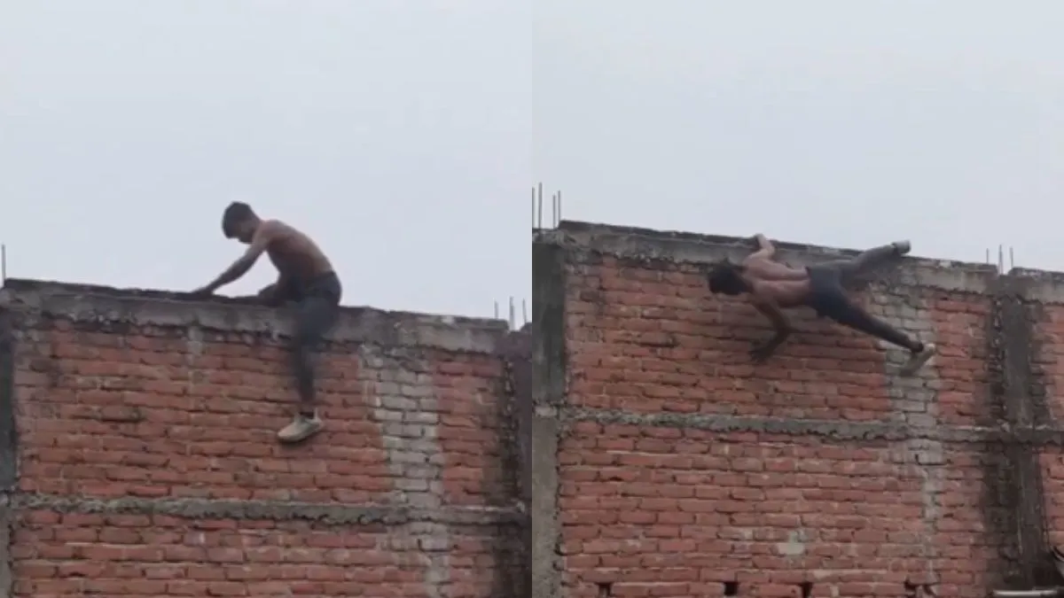 आप में से जितने भी लोग जिम जाते हैं या फिर घर पर थोड़ा फिट रहने के लिए एक्सरसाइज करते हैं, वो पुश-अप तो लगाते ही होंगे। अब आप सभी जमीन पर ही पुश-अप मारते होंगे लेकिन एक बंदा अपने घर की दीवार पर लटककर पुश-अप मार रहा है। वायरल हो रहे वीडियो में नजर आता है कि एक बंदा छत से बाहर की तरफ दीवार पर लटक जाता है। एक हाथ और एक पैर से उसने सहारा लिया हुआ है और वो बाहरी दीवार पर लटककर पुश-अप कर रहा है। यही वो कारण है कि वीडियो वायरल हो रहा है।