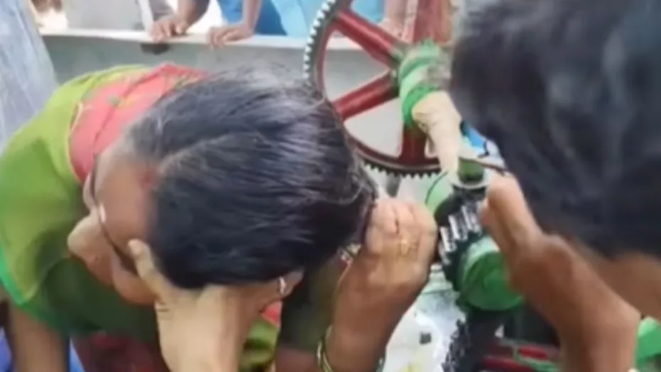 आप सभी ने गन्ने का जूस निकालने वाले मशीन को तो देखा ही होगा। इस मशीन का इस्तेमाल काफी संभल कर करना होता है क्योंकि अगर एक छोटी सी भी गलती हुई तो भारी नुकसान हो सकता है और यह बात हमें वायरल वीडियो में देखने को मिली। वीडियो में नजर आता है कि एक महिला के बाल उस गन्ने का जूस निकालने वाली मशीन में फंस गए हैं। खैर राहत की बात यह है कि शख्स ने महिला के बालों को सुरक्षित तरीके से बाहर निकाल लिया मगर इस घटना को वह महिला जिंदगी भर याद रखेगी और अगली बार के लिए सावधान रहेगी।