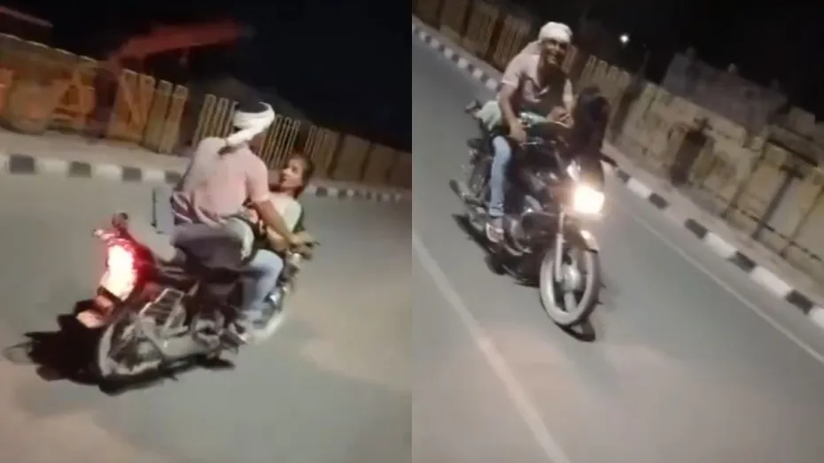 वायरल हो रहे इस वीडियो में दिख रहा है कि एक युवक बिना हेलमेट के बाइक चला रहा है, जबकि युवती बाइक की टंकी पर लेटी हुई है। दोनों आपस में हंसते-बातचीत करते हुए नजर आ रहे हैं। यह नजारा नेशनल हाईवे पर देखा गया, जहां भारी वाहनों का आवागमन आम है। इसी दौरान इस युवक के बगल से गुजर रहे एक अन्य बाइक सवार ने उनका वीडियो अपने कैमरे में रिकॉर्ड कर लिया। वीडियो में राहगीरों को यह कहते हुए सुना जा सकता है कि, "गलत है ये, सड़क पर इस तरह... कहो तो एक बोतल और कमरा दे दें।" इस पर युवक उन बाइक सवारों को वहां से निकलने का इशारा करता है। वहीं, लड़की भी बाइक पर लेटे-लेटे उन्हें वहां से जाने को बोलती है, जिसके बाद लड़के वहां से चुपचाप निकल जाते हैं।