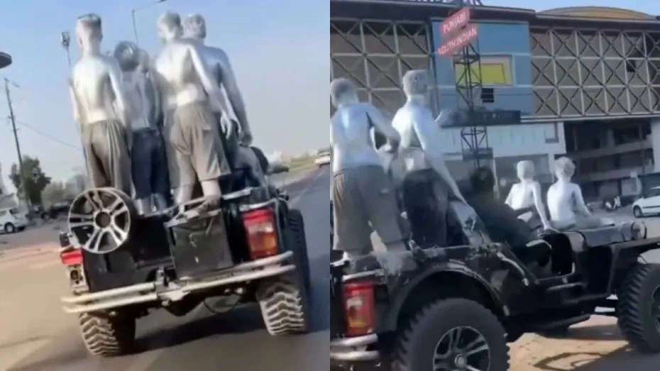 अभी जो वीडियो वायरल हो रहा है उसमें नजर आता है कि सड़क पर धीमी रफ्तार में एक कार चल रही है और उस कार पर कुछ लोग सवार हैं। सभी लोग खड़े हैं लेकिन वीडियो के वायरल होने का कारण उनका अलग दिखना है। दरअसल सभी के सभी सिल्वर रंग में रंगे हुए हैं। बाल से लेकर चेहरे तक और चेहरे से लेकर पैर तक, पूरा शरीर सिल्वर रंग में रंगा हुआ है और वो सभी गाड़ी में बैठकर कहीं जा रहे हैं। वीडियो कहां का है यह तो नहीं पता चल पाया मगर वीडियो वायरल जरूर हो रहा है।