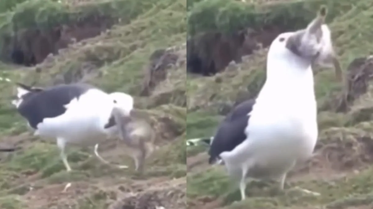 जंगल की दुनिया अपने आप में बहुत ही रहस्यमयी है और यहां हर पल जीवन और मृत्यु का खेल चलते रहता है। एक छोटी सी चूक या असावधानी किसी जानवर की जिंदगी छीन सकती है। कमजोर जानवर जहां अपनी जान बचाने की जद्दोजहद में लगे रहते हैं, वहीं शिकारी अपनी अगली भोजन की तलाश में घात लगाए रहते हैं। लेकिन क्या आपने कभी सोचा कि एक पक्षी, जो आमतौर पर मछलियां और कीड़े खाता है, एक जिंदा खरगोश को निगल सकता है? अगर नहीं, तो सोशल मीडिया पर वायरल हो रहा यह वीडियो आपको हैरानी में डाल देगा। इस वीडियो में एक समुद्री पक्षी सीगल (Seagull) जिंदा खरगोश को निगलता हुआ नजर आ रहा है, जिसे देखकर नेटिजन्स की आंखें खुली की खुली रह गई हैं।