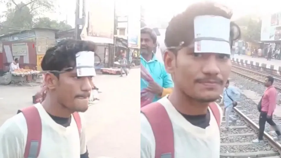 आप सभी ने कभी न कभी ट्रेन से सफर तो किया ही होगा। अब जब भी कोई ट्रेन से सफर करता है तो उसके लिए उसे ट्रेन का टिकट करवाना होता है और जब TTE उसे चेक करने आए तो लोग अपनी-अपनी टिकट दिखाते हैं। जो बिना टिकट के होते हैं, उन पर फाइन लगता है। अभी जो वीडियो वायरल हो रहा है उसमें एक लड़का नजर आ रहा है जिसके पास टिकट है मगर उसे दिखाने का तरीका हटके है। उसने अपने माथे पर ही टिकट को लगा दिया है और उसे रस्सी से बांध दिया है। वो प्लेटफॉर्म पर खुले में वैसे खड़ा है और एक बंदे ने वीडियो बना लिया जो वायरल हो रहा है।