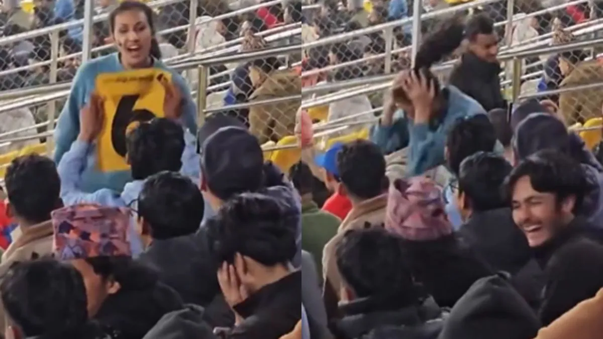 आप अगर मैच देखने कभी स्टेडियम में गए हैं तो आपने देखा होगा कि वहां पर लोग चीयर करते हैं। एक शख्स 'We Want या फिर जीतेगा भाई जीतेगा' बोलता और वहां बैठे दूसरे लोग आगे की लाइन बोलते हैं। सभी अपने पसंद की टीम के जीतने के लिए चीयर करते हैं मगर अभी वायरल हो रहे वीडियो में कुछ अलग ही देखने को मिला। वीडियो में नजर आता है कि एक लड़की जोर-जोर से We Want-We Want चिल्लाती है मगर लोग उसके बाद टीम नहीं बल्कि U-U चिल्ला रहे हैं जिससे लाइन We Want You बनी। लड़की दो-तीन बार ऐसा करती है और अंत में माथा पकड़कर नीचे बैठ जाती है।