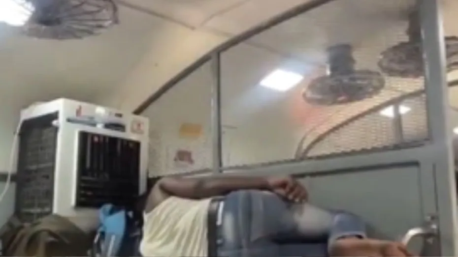 अभी जो वीडियो वायरल हो रहा है उसमें नजर आ रहा है कि एक बंदा ट्रेन की अपर सीट पर सोया हुआ है मगर वो दूसरे लोगों की तरह नहीं सोया हुआ है। उसके सिर के पास एक कूलर रखा हुआ हो जिसे वो साथ में लेकर ही गया होगा। अब उसने इस कूलर के प्लग को वहां के सॉकेट में लगाया हुआ है और वो चालू भी है। वो ट्रेन की बिजली में मजे से कूलर चलाकर मस्त हवा खाते हुए अपने सफर को पूरा कर रहा है। इसी को देख एक बंदे ने वीडियो बनाया जो सोशल मीडिया पर अब वायरल हो रहा है।