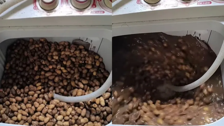 आप सभी के घरों में वाशिंग मशीन तो होगा ही। अब आप बताइए कि उसका किस काम के लिए इस्तेमाल करते हैं? अगर आपका यह जवाब है कि हर कोई वाशिंग मशीन का यूज कपड़े धोने के लिए ही करता है तो आपको बता दें कि ऐसा नहीं है। कुछ लोग अतरंगी होते हैं तो उसका अतरंगी यूज भी करते हैं। अभी जो वीडियो वायरल हो रहा है उसमें नजर आता है कि वाशिंग मशीन में बहुत सारी मूंगफली रखी हुई है और उसमें पानी भरने के बाद वो मशीन को चला देता है। वीडियो में दिखता है कि वाशिंग मशीन में मूंगफली धूल जाती हैं।