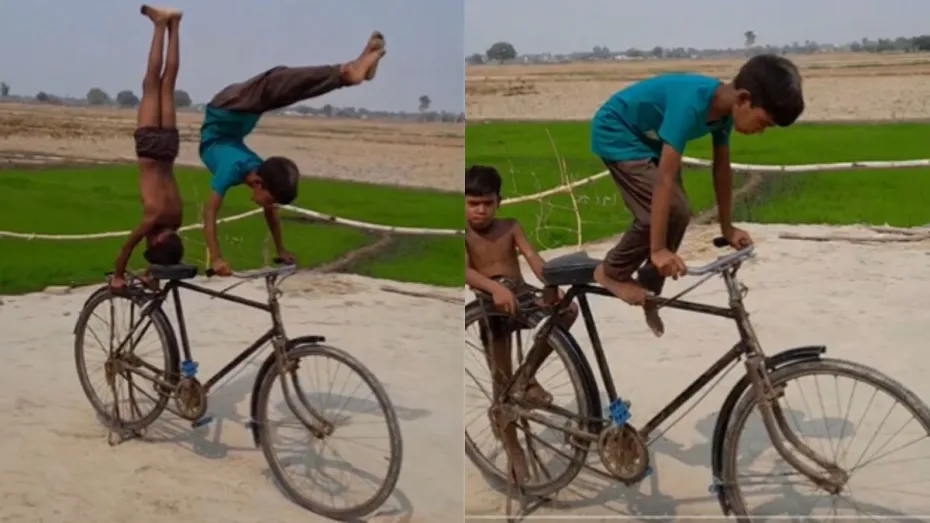 भारत में टैलेंट की कोई कमी नहीं है। गावों में चले जाओ तो आपको बड़ा से बड़ा तैराक, तेज दौड़ने वाला और बिल्कुल फिट पहलवान मिल जाएंगे। जिन्हें आज तक कोई अवसर नहीं मिला और उनका टैलेंट बर्बाद हो गया। हाल में ऐसे ही दो टैलेंटेड लड़कों का वीडियो सोशल मीडिया पर वायरल हो रहा है। वीडियो में दोनों लड़के एक ही साइकिल पर खतरनाक स्टंट करते हुए देखे जा रहे हैं। बच्चों का स्टंट देख हर कोई हैरान रह गया। वीडियो पर लोग खूब अपना प्यार लुटा रहे हैं।