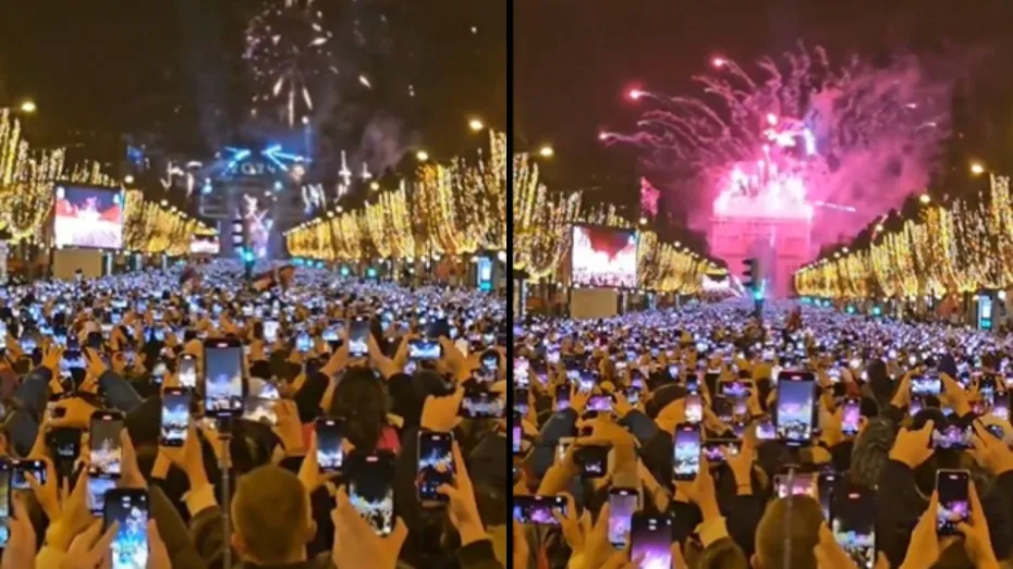 न्यू ईयर सेलिब्रेशन खत्म हो गया। हर किसी ने अपने-अपने अंदाज में इस दिन को सेलिब्रेट किया। ऐसे ही हर साल की तरह पेरिस के चैंप्स एलिसीज में भी न्यू ईयर सेलिब्रेट किया गया। न्यू ईयर सेलिब्रेशन के वक्त यहां पर शानदार आतिशबाजी की गई। लेकिन इस दौरान सामने एक ऐसा नजारा दिखा जिसे देखने के बाद पूरी दुनिया हैरान है।