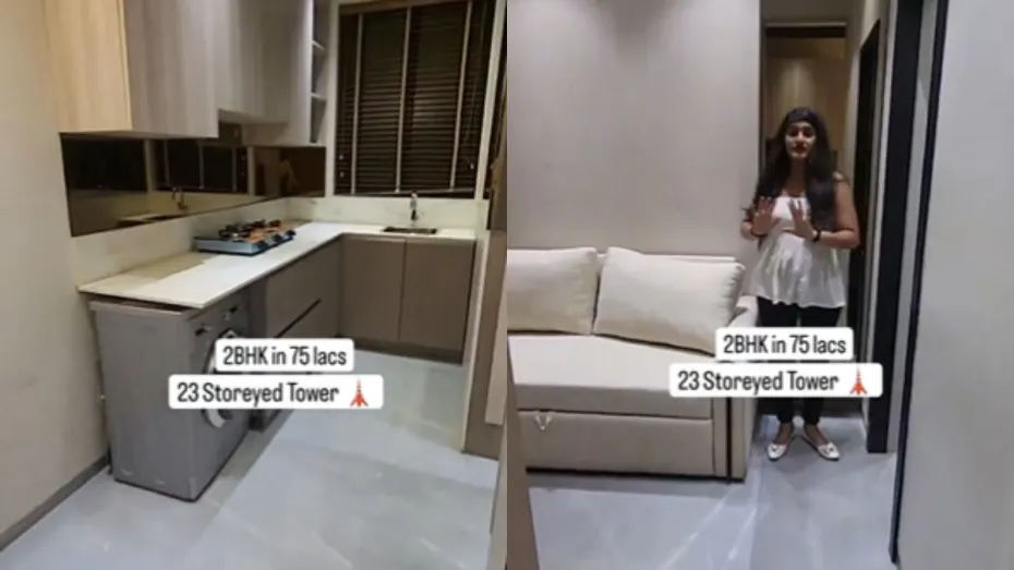 सोशल मीडिया पर वायरल हो रहे वीडियो में एक लड़की कांदिवली ईस्ट में मौजूद एक 2 BHK का फ्लैट दिखा रही है। वीडियो देखने के बाद आपको अंदाजा लग जाएगा कि इस घर में जगह काफी कम है। मगर जैसे ही आप बेडरूम को देखेंगे आपका दिमाग चकरा जाएगा। बेडरूम में स्पेस इतना कम है कि आप बेड भी अच्छे से नहीं लगा सकते हैं। फ्लैट का मास्टर बाथरूम शुरू होने से पहले ही खत्म हो जाता है। दूसरे रूम का भी हाल कुछ ऐसा ही दिखता है। बता दें कि इस फ्लैट की कीमत 75 लाख रुपये बताई जा रही है।