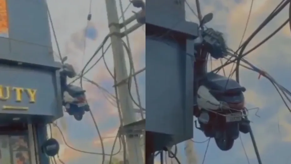 इस वायरल वीडियो में एक स्कूटी बिल्डिंग की बालकनी से नीचे तारों पर फंसी लटकी दिखाई दी। अब ये स्कूटी वहां कैसे पहुंची, ये तो शायद कोई जासूस ही बता पाएगा। लेकिन एक बात पक्की है, इस कारनामे ने लोगों का दिमाग हिलाकर रख दिया। कोई कह रहा है कि ये किसी "पापा की परी" का कमाल है, तो कोई इसे जानबूझ कर किया गया काम बता रहा है। वीडियो के वायरल होते ही इस पर लोगों के कमेंट्स की बौछार होने लगी। जहां वीडियो पर एक यूजर ने कमेंट करते हुए लिखा, "पापा की परी ने तो स्कूटी को स्पाइडरमैन बना दिया।" दूसरे ने मजाक करते हुए कहा, "लगता है दीदी ने पार्किंग के लिए नई टेक्नोलॉजी ईजाद कर दी है।" कोई बोला, "ये स्कूटी तो उड़ने की तैयारी में थी।" कुछ लोग तो इस कारनामे को देख इसके इतने कायल हो गए कि कहने लगे, "इसे तो रोहित शेट्टी की अगली फिल्म में स्टंट कोरियोग्राफर बना देना चाहिए।"