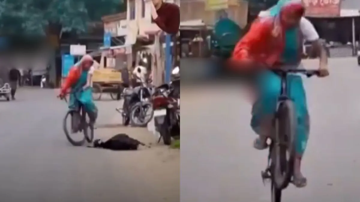 अभी जो वीडियो वायरल हो रहा है उसमें नजर आता है कि एक महिला रेंजर साइकिल चला रही है मगर वो नॉर्मल तरीके से साइकिल नहीं चला रही है। महिला किसी 13-14 साल के लड़के की तरह साइकिल पर हवाबाजी करते हुए उसे चला रही है। कभी भी अचानक साइकिल से कट मार रही है तो कभी आगे वाले पहिए को हवा में उठा ले रही है। वीडियो में दिखता है कि महिला साइकिल को लोगों और कुत्ते के पास लेकर जाती है और अचानक से कट मार लेती है। इन्हीं सभी कारण की वजह से महिला का यह वीडियो सोशल मीडिया पर वायरल हो गया। एक बार आप भी उस वायरल वीडियो को देखिए।