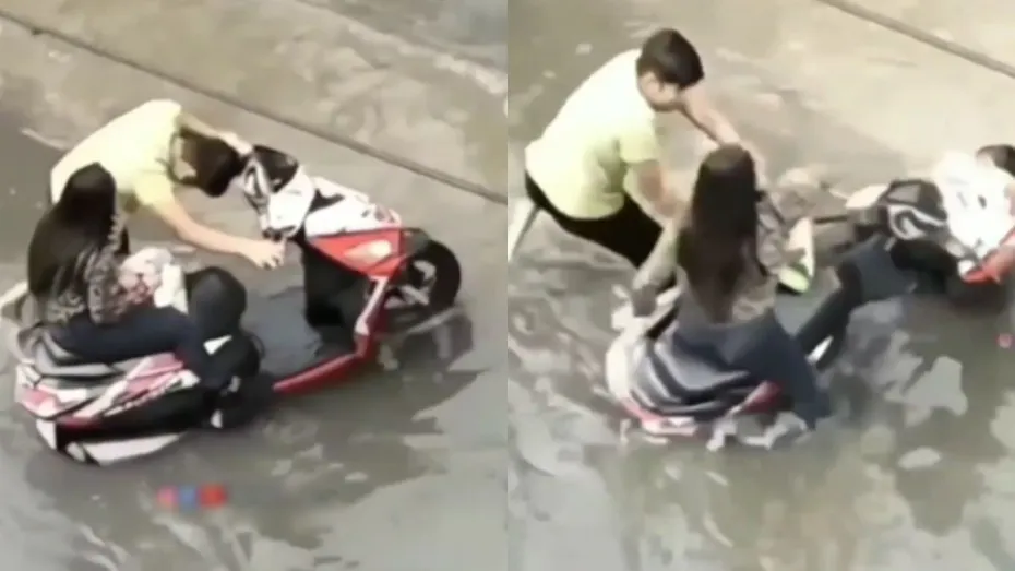 अभी जो वीडिया वायरल हो रहा है उसमें नजर आ रहा है कि किसी सड़क पर पानी भरा हुआ है। सड़क पर गाड़ियां गुजर रही हैं। वहीं एक शख्स नजर आता है जो खराब स्कूटी को खींचकर आगे ले जाने की कोशिश कर रहा हैं। वहीं स्कूटी पर एक लड़की बैठी हुई नजर आ रही है। स्कूटी खराब होने के बाद भी वह सीट से नहीं उतरती है जिस कारण लड़के को गुस्सा आ जाता है। इसके बाद वह स्कूटी के हैंडल को छोड़ देता है जिसके बाद स्कूटी और लड़की दोनों ही नीचे गिर जाते हैं। लड़की सड़क पर भरे गंदे पानी में गिर जाती है। और यह देखकर लोग खूब मजे ले रहे हैं।