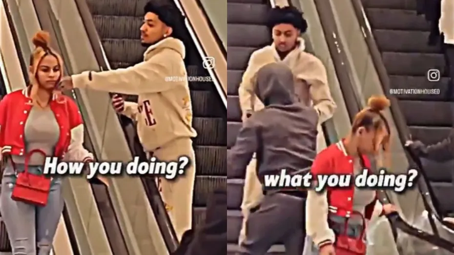 यह वीडियो एक शॉपिंग मॉल का है, जहां एक कपल एक साथ समय बिता रहा था। वीडियो में दिखाया गया है कि एक लड़की मॉल की स्वचालित सीढ़ियों पर खड़ी है। तभी दूसरी तरफ की सीढ़ी पर खड़ा एक लड़का पास में आता है और उसके गालों पर हाथ फेर देता है। पीछे लड़की का बॉयफ्रेंड खड़ा होकर यह तमाशा देखते रहता है। लड़के की ये हरकत लड़की के बॉयफ्रेंड को नागवार गुजरती है और वह तुरंत लड़के का कॉलर पकड़ उसे सीढ़ियों पर ही पटक देता है और एक-दो मुक्के भी जड़ देता है। बॉयफ्रेंड का गुस्सा देख लड़का खुद को बचाना ही बेहतर समझता है और वह समय रहते प्रैंक-प्रैंक चिल्लाने लगता है। जब लड़की के बॉयफ्रेंड को पता चलता है कि लड़का प्रैंक कर रहा है और ये सब कैमरे में रिकॉर्ड हो रहा तब वह उसे छोड़ देता है। इस दौरान मॉल में मौजूद लोग इस ड्रामे को देखकर हैरान रह गए और कई लोगों ने अपने फोन निकालकर इस घटना को रिकॉर्ड करना शुरू कर दिया। वीडियो में लड़के को बार-बार यह कहते सुना जा सकता है कि यह सिर्फ एक "प्रैंक" था।