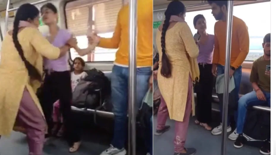 दिल्ली मेट्रो आए दिन किसी न किसी वीडियो की वजह से चर्चा में रहता है। DMRC लगातार लोगों को चेतावनी देता रहता हैं इसके बावजूद मेट्रो में ये बवाल, लड़ाई-झगड़े कम होने के नाम नहीं ले रहे हैं। आपने भी ऐसे कई वायरल वीडियो देखे होंगे जिनमें लोग नाचते, लड़ाई-झगड़े करते हुए दिख जाएगें। हद तो तब हो गई जब मेट्रो में कई बार तो कपल रोमांस करते हुए दिखे। मेट्रो में सीट को लेकर भी झगड़े देखने को आए दिन मिल ही जाते हैं, ऐसा ही एक मामला फिर से सामने आया है, जिसमें एक महिला लड़की व लड़के से भिड़ती दिख रही है। इसका वीडियो सोशल मीडिया पर वायरल हो गया है।
