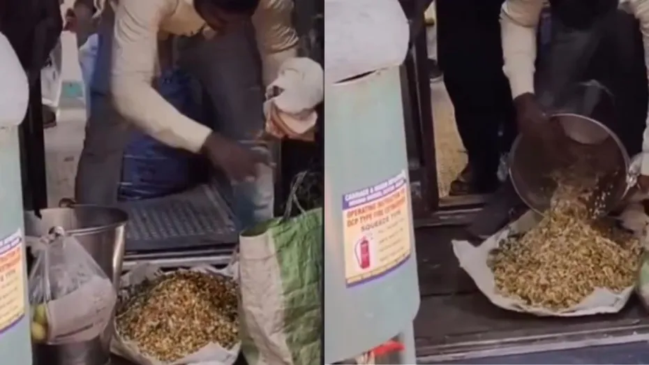 अभी जो वीडियो वायरल हो रहा है उसमें नजर आता है कि एक बंदा जो ट्रेन में चना-मटर बेचने के लिए चढ़ा हुआ है, वो एक जगह पर रुककर उन्हें अच्छे से मिक्स कर रहा है। वीडियो में दिखता है कि वो ट्रेन के बाथरूम के बाहर ही खड़े होकर जमीन पर सामान रखकर मिला रहा है। उसने हाथ में ग्लवस भी नहीं पहना है और ऊपर से नीचे, बाथरूम के बाहर सब कुछ रखकर मिक्स कर रहा है और अब कोच के अंदर जाकर वो लोगों को यह सब बेचेगा। अब आप अगर यह सब खाते हैं तो फिर आप वीडियो जरूर देख लीजिए।