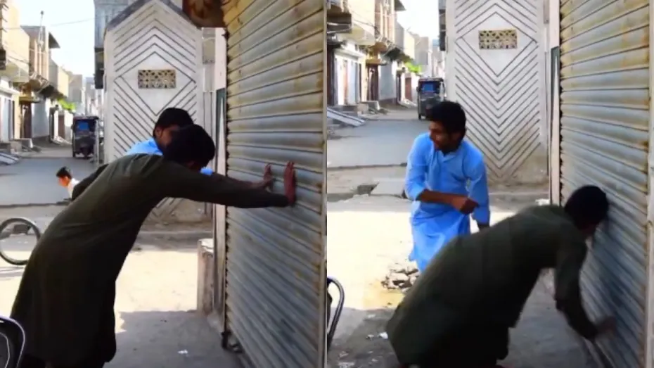 अभी जो वीडियो वायरल हो रहा है उसे देखने के बाद आप अपनी हंसी को रोक नहीं पाएंगे। वीडियो में नजर आता है कि एक आदमी दुकान के बंद शटर पर हाथ को रखता है। ऐसा करके वो अपने दोस्त को ऐसा ही करने के लिए दिखाता है। इसके बाद उसका दोस्त अपने एक हाथ को शटर पर रखता है और उसके शरीर का वजन उसी हाथ के बल पर था। इसके तुरंत बाद वो उसके दूसरे हाथ को पकड़कर पहले हाथ को झटका देकर नीचे कर देता है। इससे उसका दोस्त नीचे गिरता है जिसमें उसे चोट भी लगी होगी। इसके पीछे वो उसे मारने के लिए पीछे भागता है।