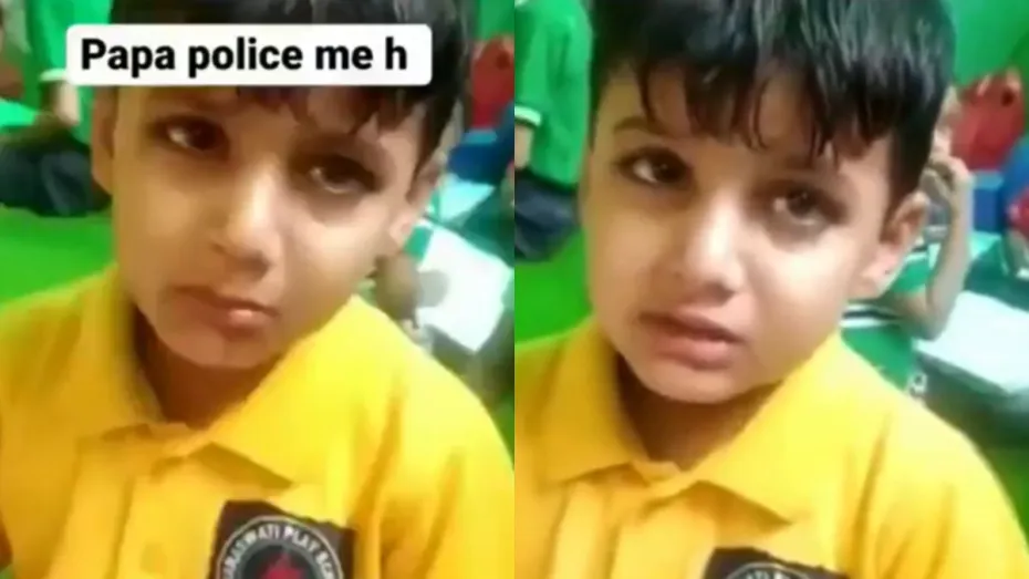 एक्स (पहले ट्विटर) पर वायरल हो रहे वीडियो में बच्चा रोते हुए अपनी टीचर को बताता है कि उसके पापा पुलिस में हैं। इसके बाद टीचर जब उससे पूछती है कि, क्या करें आपके पापा पुलिस में हैं तो? टीचर को इसका जवाब देते हुए बच्चा कहता है, 'मार देगा गोली, संदूक के ऊपर रखी है।' इसके बाद टीचर पूछती है कि मुझे मारोगे तो बच्चा हां में अपना सिर घूमाता है। बच्चे के इस जवाब के कारण वीडियो काफी वायरल हो रहा है।
